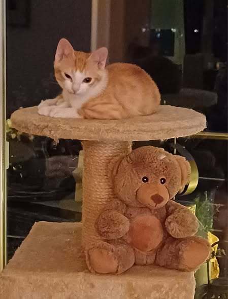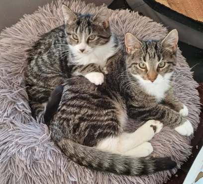 Links im Bild ist der einst kleine Leander mit einer großen Geschichte zu sehen. Vermittelt von uns als Baby, kurze Zeit später schwer erkrankt. Ataxie, diverse Folgen des Katzenschnupfens, Kreislauf....und ein Auge musste entfernt werden. Er hatte alles gut überstanden, dank der unermüdlichen Pflege seiner Halterin und des begleitenden Tierarztes. Sicher hat Leander auch einen Schutzengel gehabt.